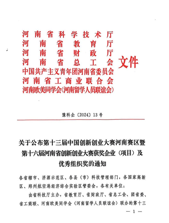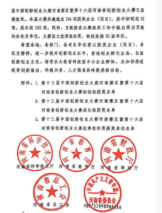 河南省创新创业大赛三等奖